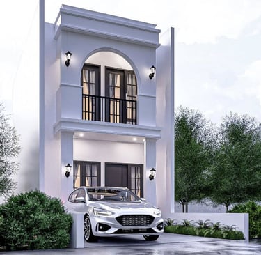 Konsep arsitektur minimalis kontemporer dipadukan dengan nuansa hijau yang menenangkan, menciptakan harmoni antara gaya hidup modern dan kesejukan alam.