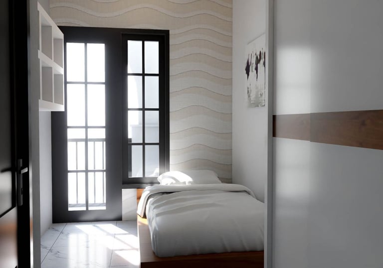 3 kamar tidur, 2 kamar mandi, dan taman.